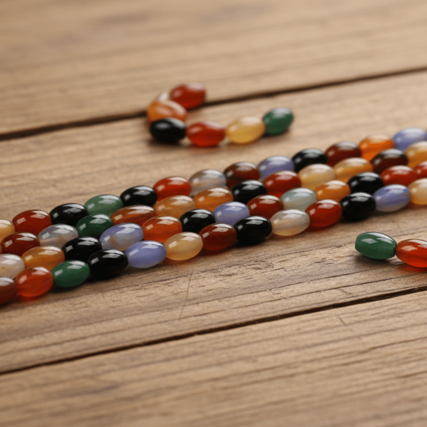 Karışık Akik Doğaltaş – 8x12 mm Arpa Kesim Dizi Taş | Denge ve Zarafet